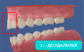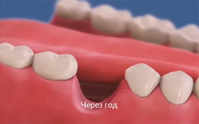 На рисунке видно, какие щели между зубов образуются уже через год, после удаления.
